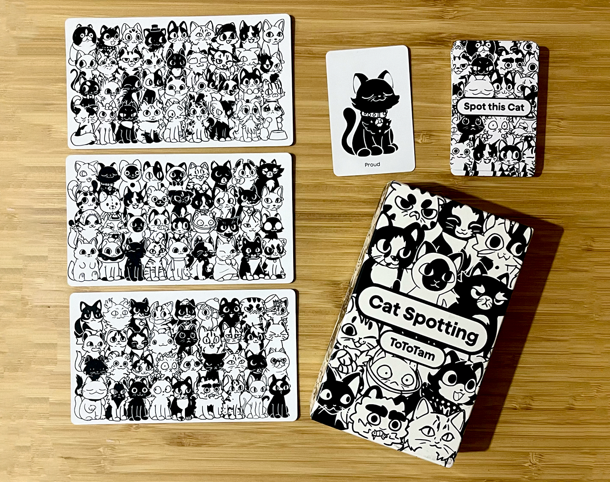 Spot the Cat in the crowd first in this fast-playing competitive cat-searching card game!