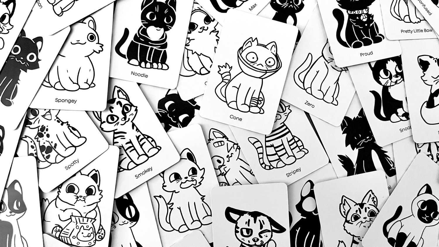The game features over 100 unique cats hand-drawn by Liezl Ronquillo (aka @vivinkart). Backers from the previous Kickstarter submitted some of these cats for Liz to draw.